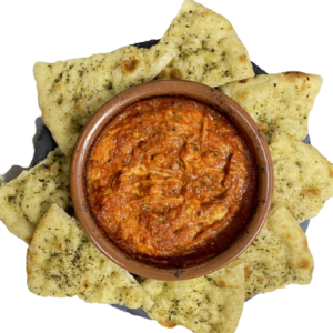 Fundido de provolone con nuestra salsa de tomate, acompañado de focaccia.